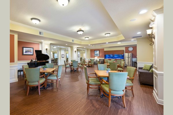 Community features include a private patio courtyard and beautifully landscaped grounds with walking paths and gardening spaces. Inside, you’ll find multiple dining venues, a theater, dedicated worship space, salon and barber shop, and inviting common spaces for gathering with neighbors.