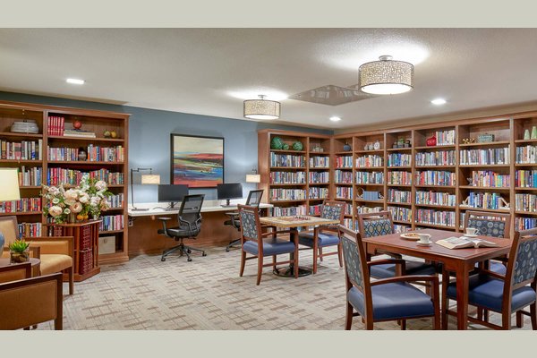 Community features include a patio, courtyard, outdoor dining space and beautifully landscaped grounds with walking paths. Inside, you’ll find multiple dining venues, a movie theater, library, salon and spa, and inviting common spaces for gathering with neighbors.