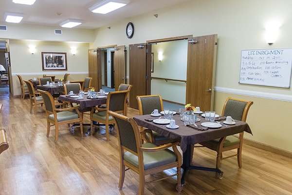 Our restaurant style dining room provides delicious meals, a chance to socialize with friends and pampering by our excellent wait staff. Our chefs enjoy country cooking and they make mouthwatering fried chicken, savory meatloaf and delicious homemade apple pies and cherry cobbler.